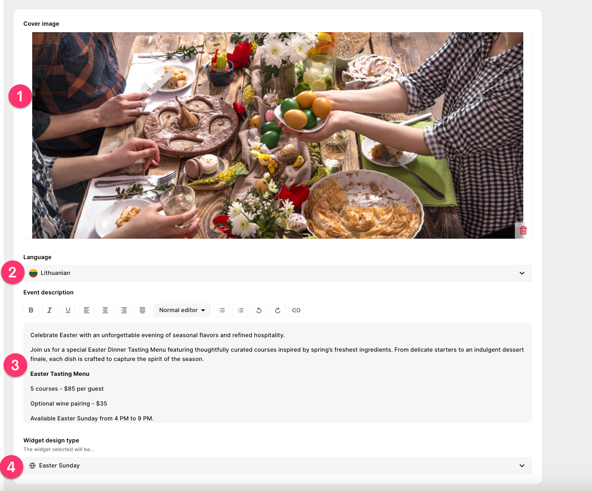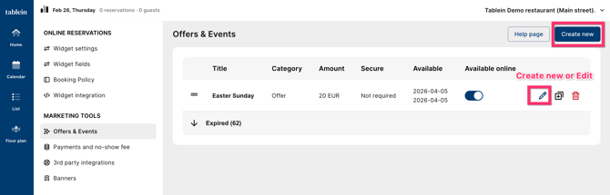Rename the widget after your event (e.g., "Valentine's Tasting").