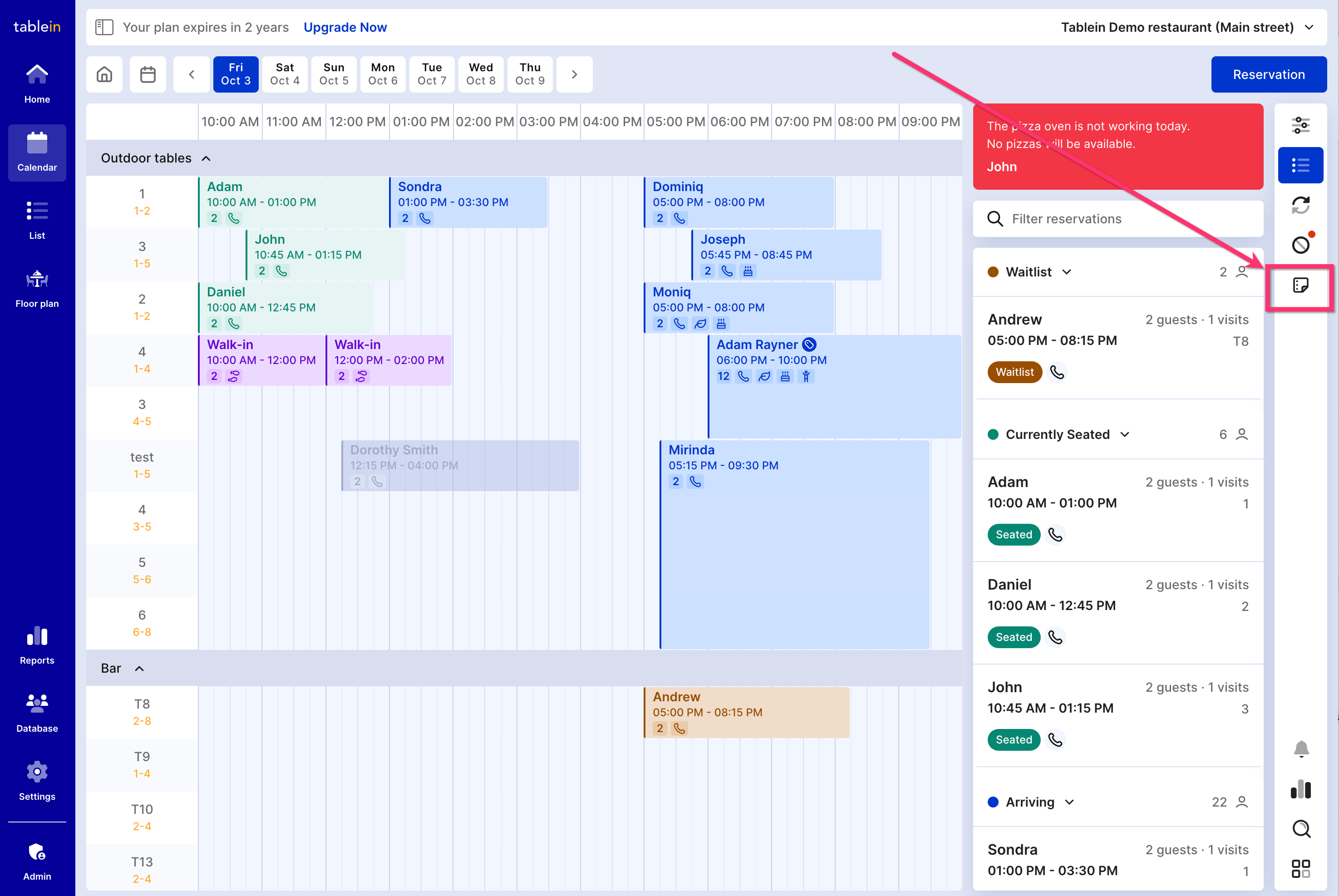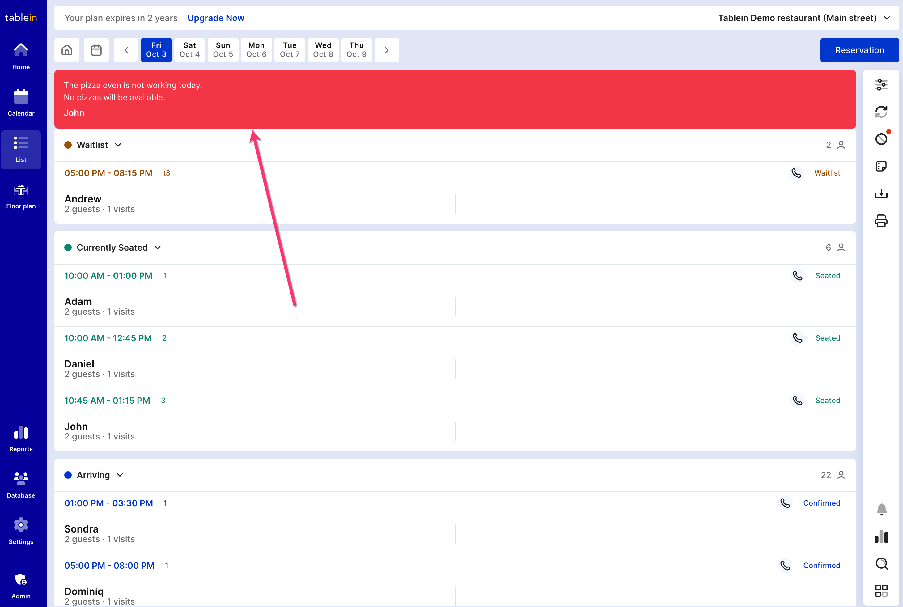 Your note will be displayed at the top of the reservation list sidebar, in the reservation list, and in the mobile version, making it easy for all staff to see what’s important.
