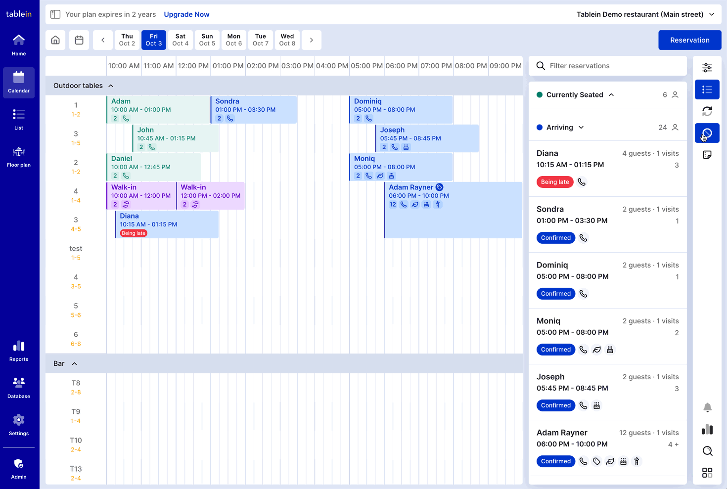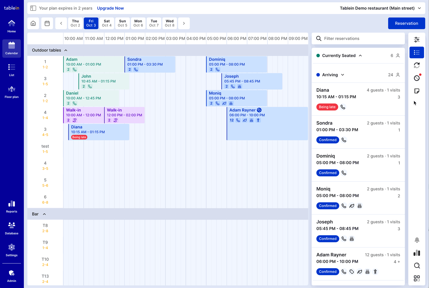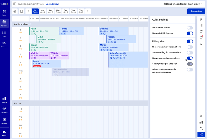 You can easily view which guests are currently seated or arriving soon, helping you manage your service flow more efficiently.