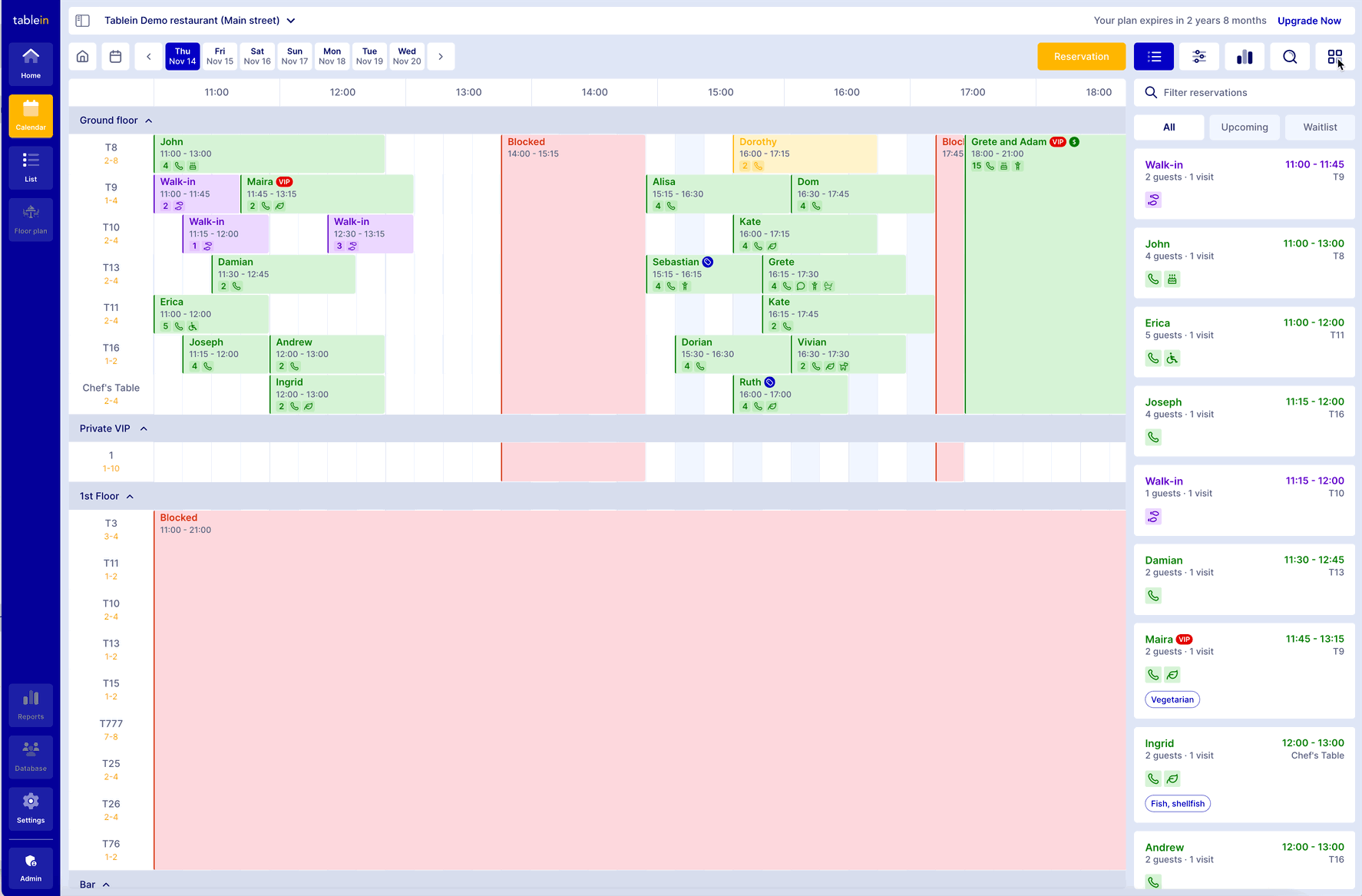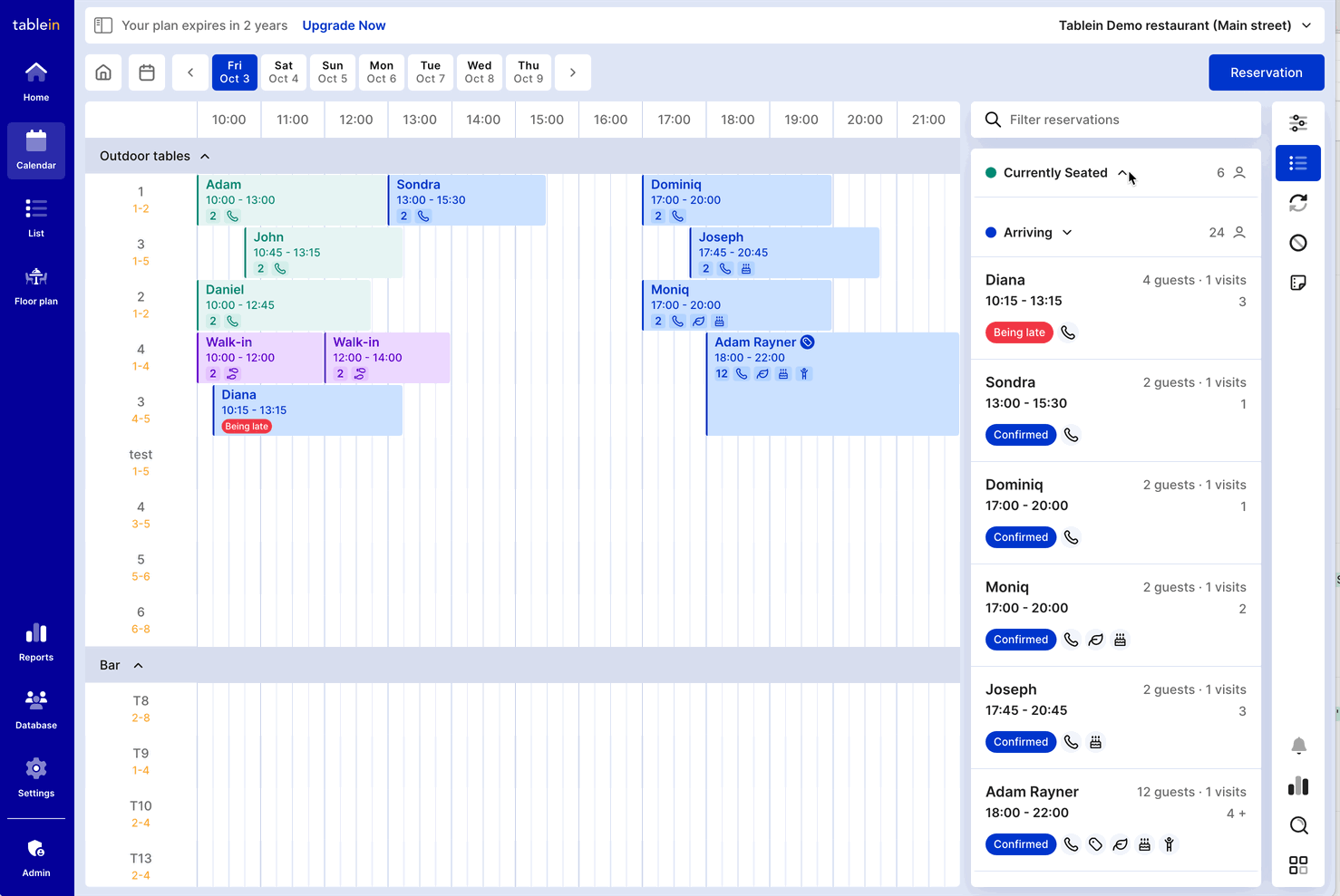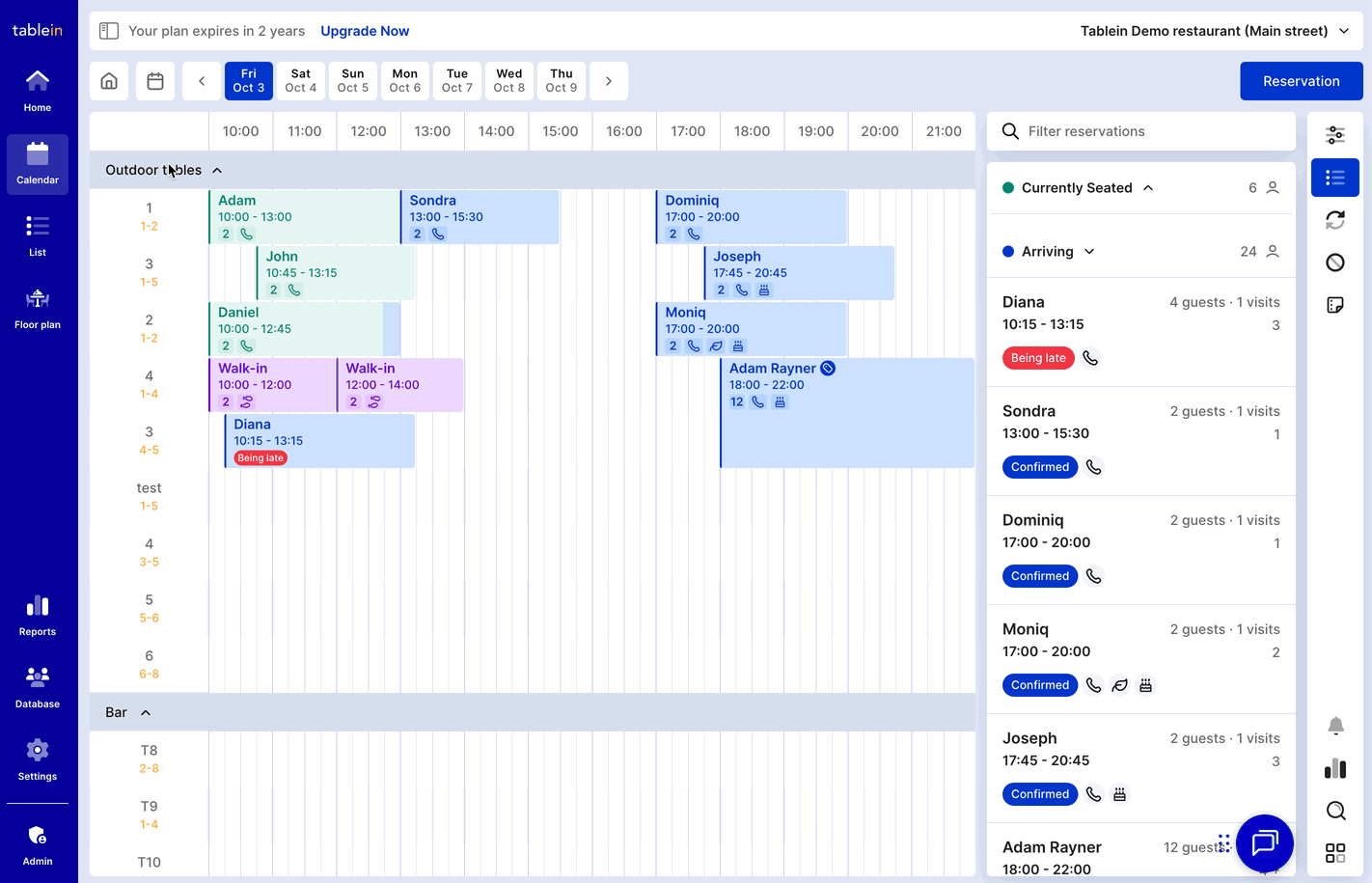 You can easily view which guests are currently seated or arriving soon, helping you manage your service flow more efficiently.