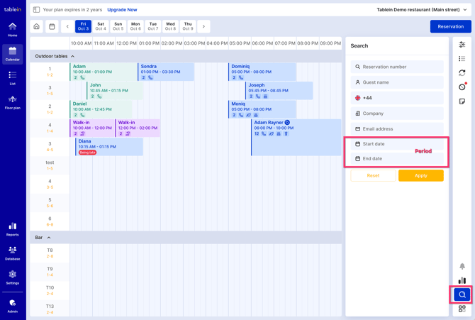 You can also use this feature to display all reservations within a selected period - for example, view all bookings for a weekend or all upcoming reservations.