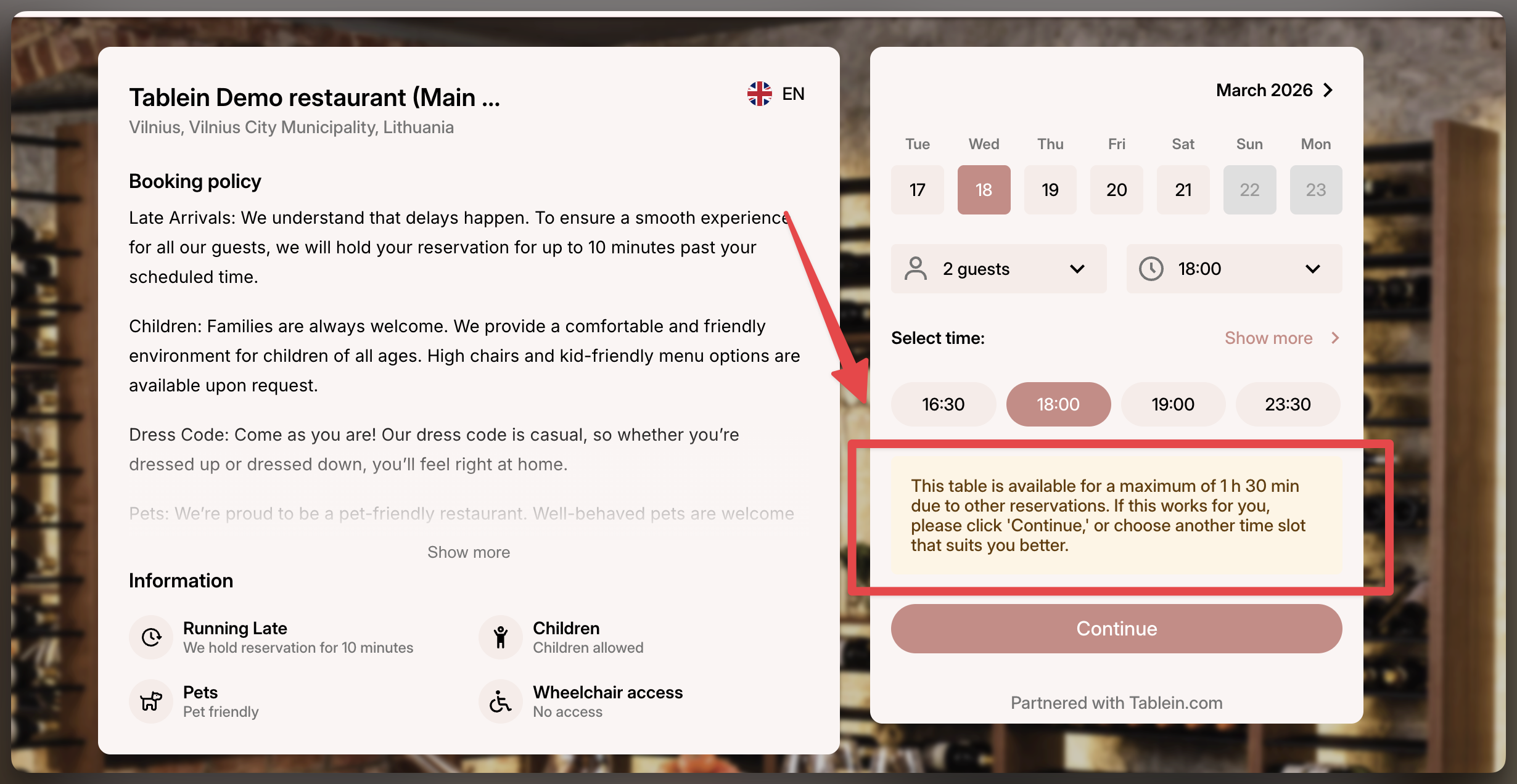 How it works: If a full 2-hour slot isn't available online, the system will offer the 1.5-hour slot to the guest.