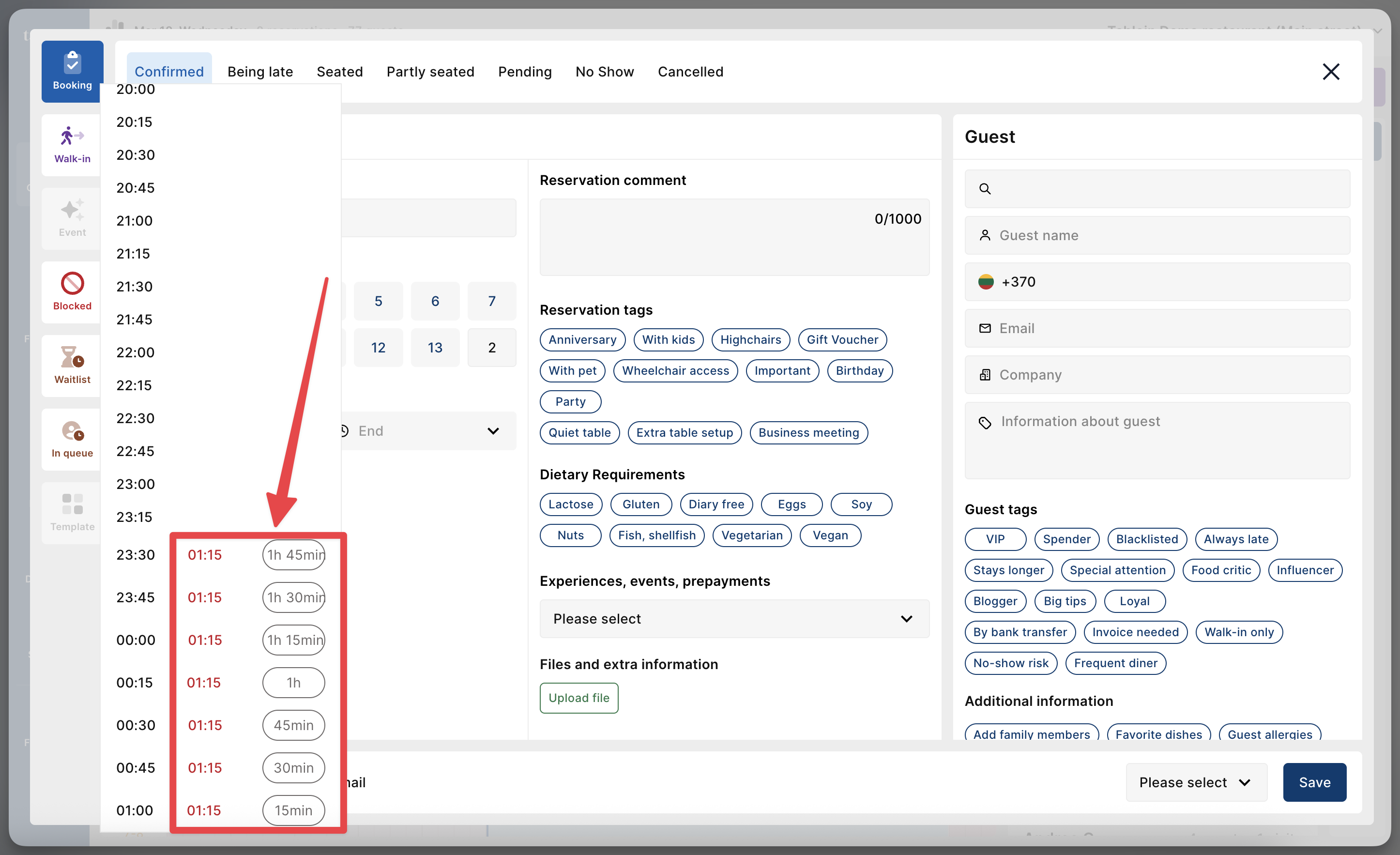 Phone Reservations: If you manually book a table and the default time doesn't fit the gap, the system will show you the exact available start and end times so you can decide if it works.